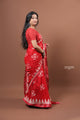 Vibrant Red Cotton Slub Saree with Handcrafted White Batik Print