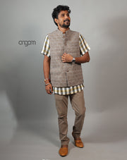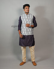 Elegant Grey Ikat Nehru Jacket for Men – Festive Wear
