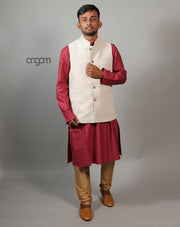 Elegant White and Red Ikat Nehru Jacket for Men