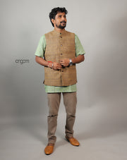 Kolika Linen Nehru Jacket with Textured Weave Design