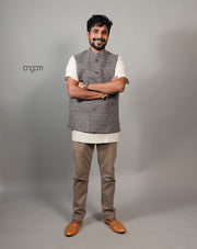 Kolika Linen Nehru Jacket in Classic Checkered Design