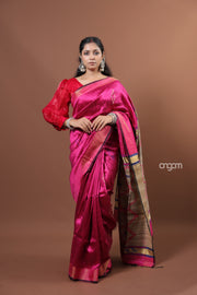 Stunning Pink Dupion Silk Saree with Elegant Zari Border