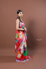 Vibrant Multicolor Abstract Print Linen Digital Saree for Elegant Look