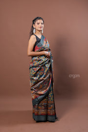 Kolika Tussar Digital Print Saree in Teal with Floral Motifs