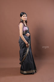 Elegant Black Linen Saree with Silver Border and Subtle Motifs