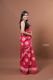 Kolika Red Mercerised Cotton Saree with Elegant White Prints