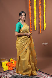 Elegant Mustard Yellow Liva Saree with Subtle Woven Designs