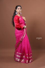 Hot Pink Organza Saree with Zari Border – Festive Elegance