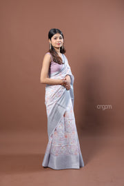 Soft Grey Kota Viscose Digital Print Saree with Floral Patterns